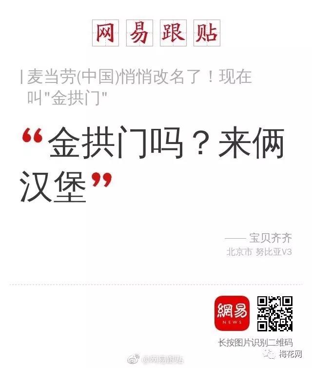 @网易跟帖也来了,“金拱门,来俩汉堡” !