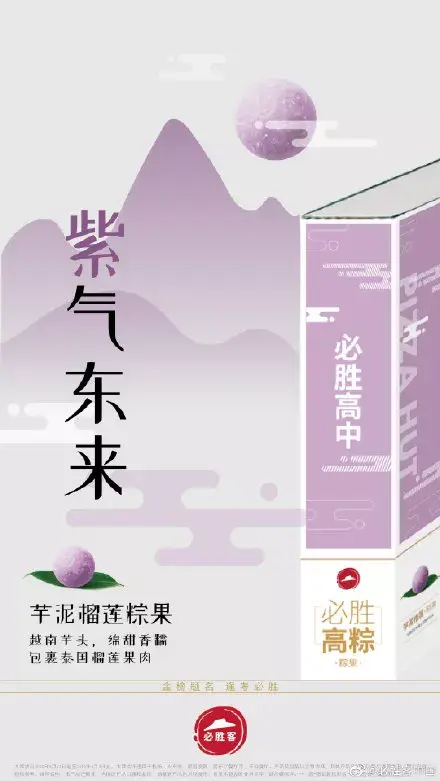 今年的端午节和高考时间撞车,必胜客非常机灵地推出“必胜高粽”系列(即:必胜高中),不止有美好的寓意,还有缤纷的口味:芋泥榴莲粽果、抹茶红豆粽果、南瓜咸蛋黄粽果,有你喜欢的味道吗?