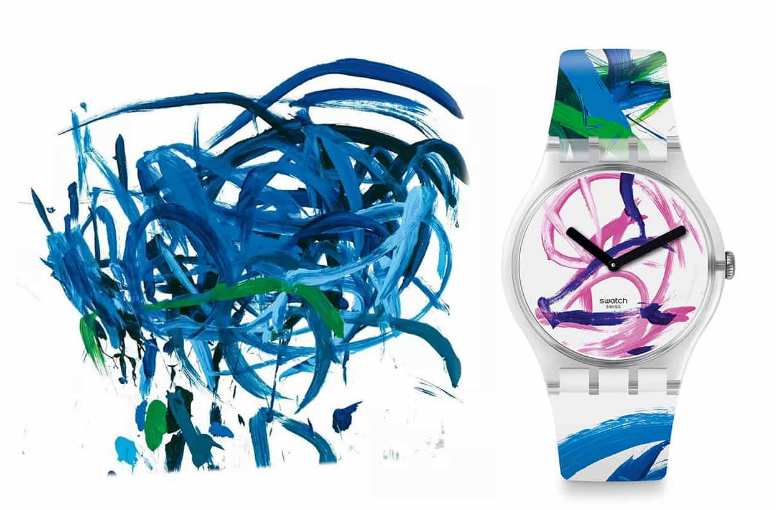 一起来看看这款艺术腕表:简洁大方的白底上,是蓝绿线条的碰撞与飞溅,这带来了强烈的视觉冲击效果。而后现代主义的绘画风格,更是给这幅杰作带来无限多层面的想象空间。谁能想到这是一头猪设计的呢?