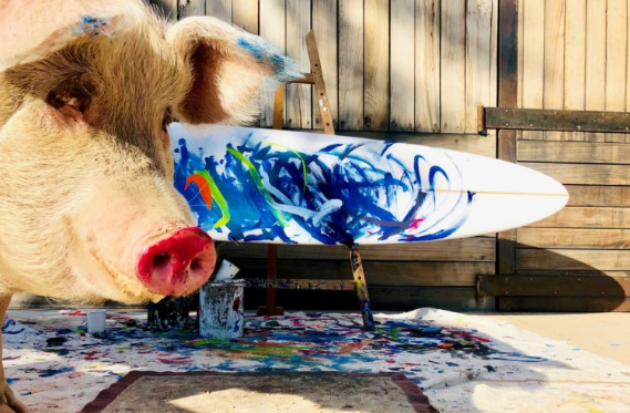 而如果你对这位猪设计师,有兴趣进一步了解的话,你会发现它拥有自己的网站,巡回展览,经纪人…..(人不如猪系列)