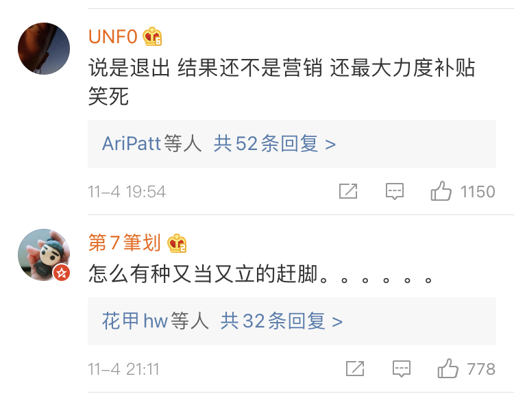 很快,这条反其道微博赢得了不少网友的点赞,不过另一方面不少网友指出这只是一场“反套路”营销,说退出其实没有真退出,更有“诋毁同行”的嫌疑。
