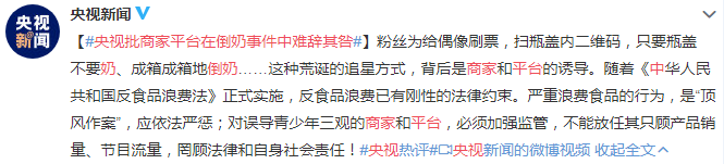 很快,事件的卷入方爱奇艺《青春有你3》、蒙牛、粉丝被纷纷推上风口浪尖。连央视都点名了~