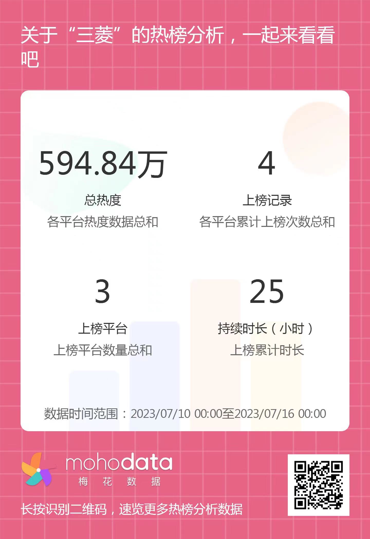 热搜方面,广汽三菱事件相关热搜热度总计594.84万,上榜记录4次,上榜平台3家,持续时长25小时。详情可扫描以下二维码查看。