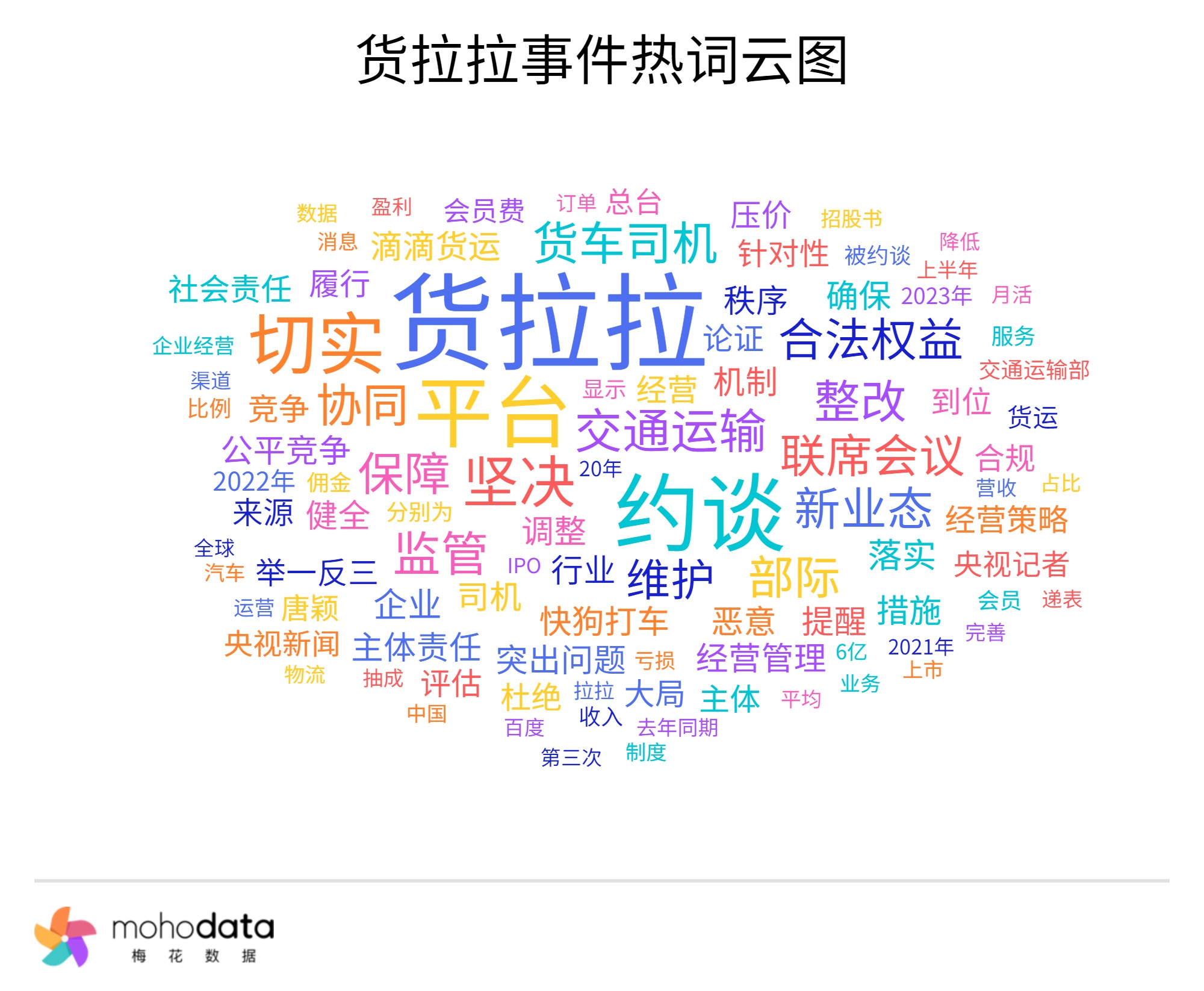 声量热词方面,热词云图如下所示,其中“约谈”“切实”“监管”“交通运输部”“合法权益”“货车司机”“保障”“整改”“维护”等词汇排名较前。