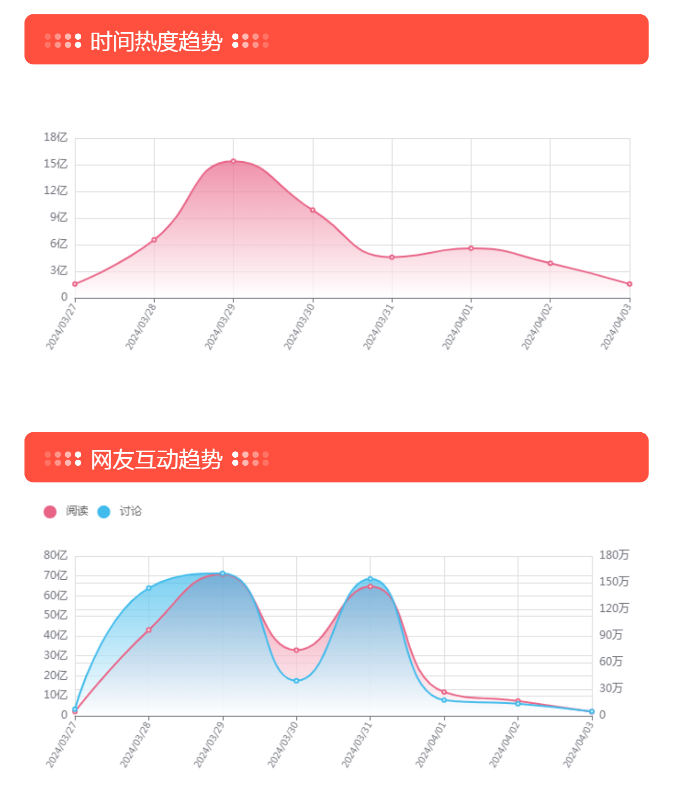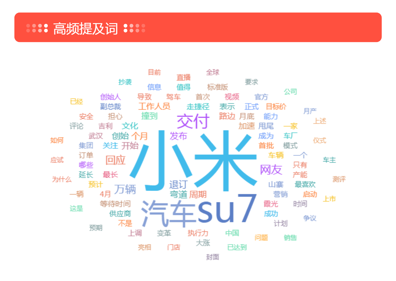 日前小米集团在北京举行主题为“向前”的小米汽车上市发布会,正式发布小米 SU7。小米SU7舆情引爆网络,相关话题屡上热搜。根据梅花数据热榜舆情观察,自3月27日至4月3日13时,小米汽车相关舆情热榜共计714条,上榜总热度达34.16亿,上榜平台10家,持续总时长176小时。