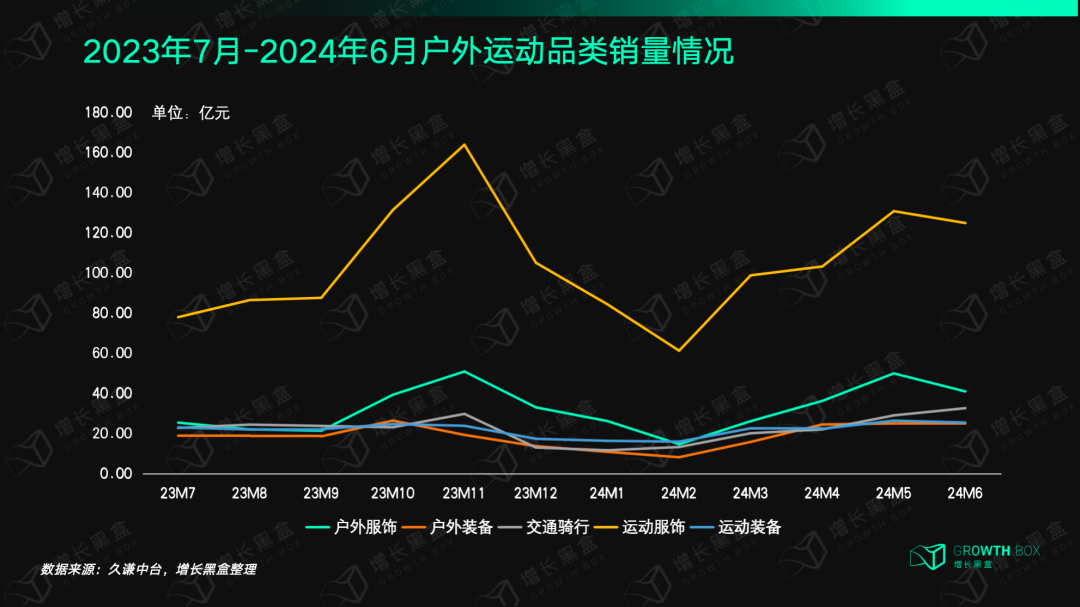 我们观察到,在摆脱了疫情的影响之后,过去一年户外运动品类的销量呈现整体上升的趋势,特别是在双11、618这样的大促节点,消费者对于户外运动相关的消费有着强烈的需求。