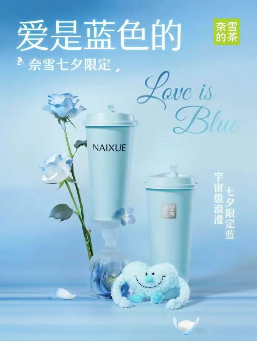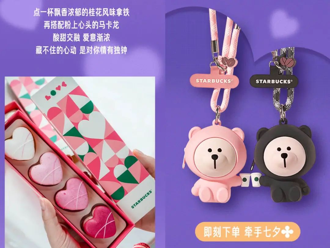 以"爱是蓝色的"为口号,推出七夕限定的蓝色主题杯和袋,以及心形迷你毛绒公仔。更与携程合作,提供"内蒙古双人往返套票",为情侣们制造浪漫惊喜。