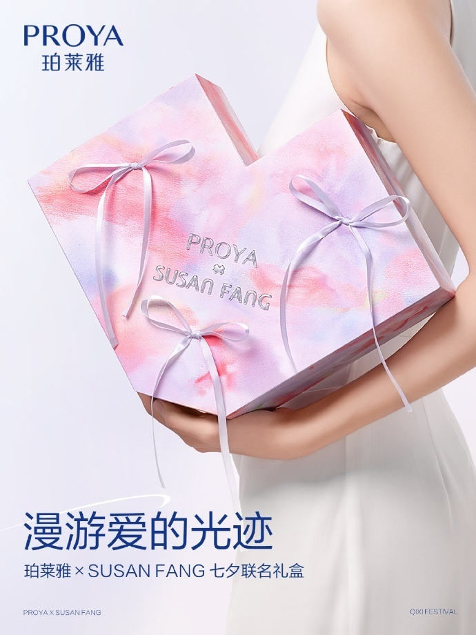 珀莱雅携手SUSAN FANG,特别推出“漫游爱的光迹”七夕联名礼盒。让七夕的浪漫氛围与SUSAN FANG标志性的色彩晕染印花相遇,创造出一场视觉与情感的盛宴。