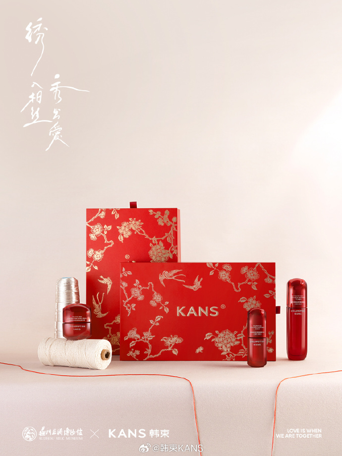 韩束携手苏州丝绸博物馆,共同打造了“七夕联名限定礼盒”,将千年丝绸的华美与现代护肤的精致完美融合,传递了深情厚意的同时,也展现了中国品牌的力量。