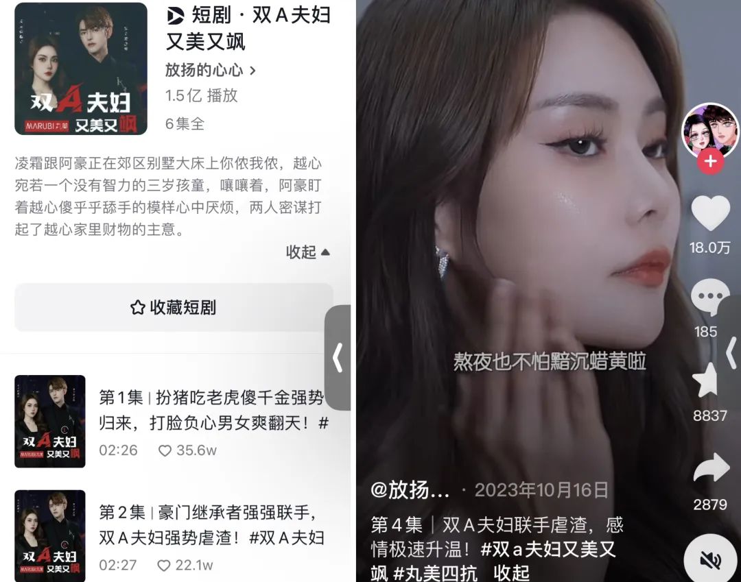 由丸美打造的抖音短剧《双A夫妇又美又飒》,讲述了丸美集团的千金与一位神秘豪门大少组成的双A夫妇,如何在逆境中相互扶持,共同对抗敌人的故事。