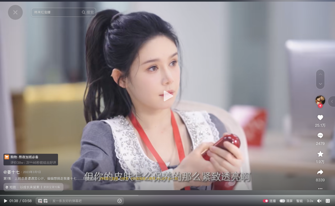 短视频平台的互动性和社区氛围赋予了短剧更加亲民和接地气的特性。这种强互动性有助于拉近品牌与用户之间的距离,甚至实现”剧情带货”的效果。短剧营销很有机会从根本上改变品牌营销的策略和逻辑,为品牌与消费者之间的互动提供新的可能性。