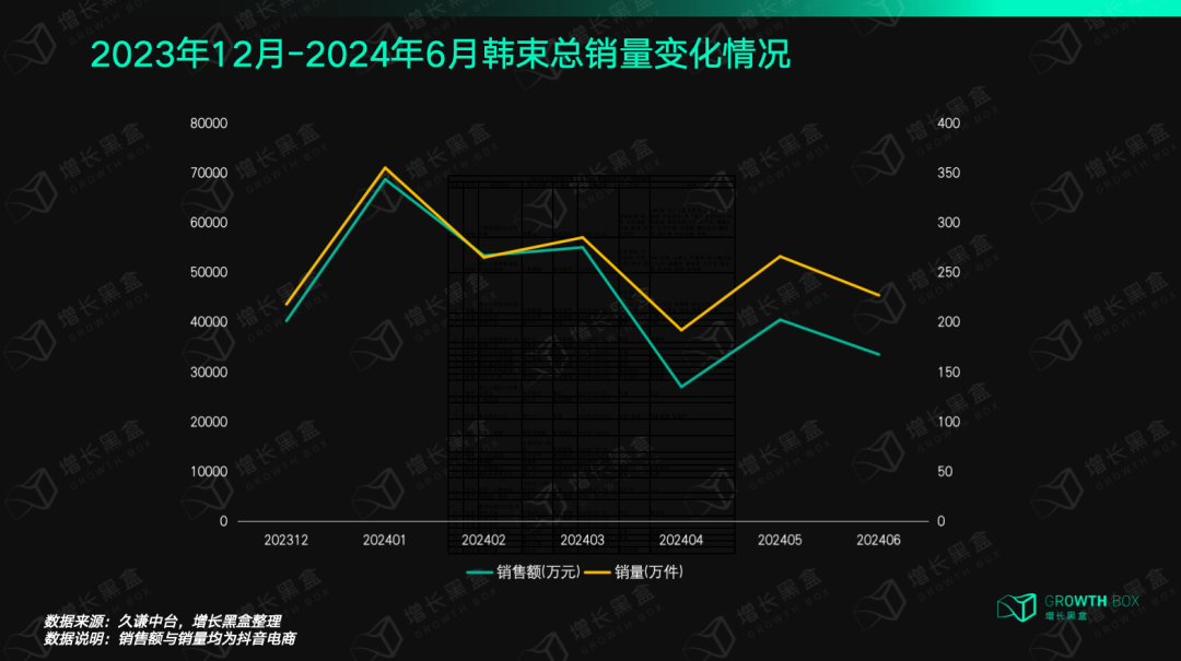 2024年第一季度,韩束在抖音电商的销售额环比增长29.87%,在美妆品类中遥遥领先。此外,韩束在抖音电商的GMV在2024年5月7日超过了24.99亿元,继续稳居美妆品类首位。