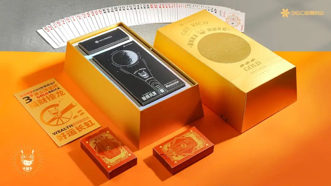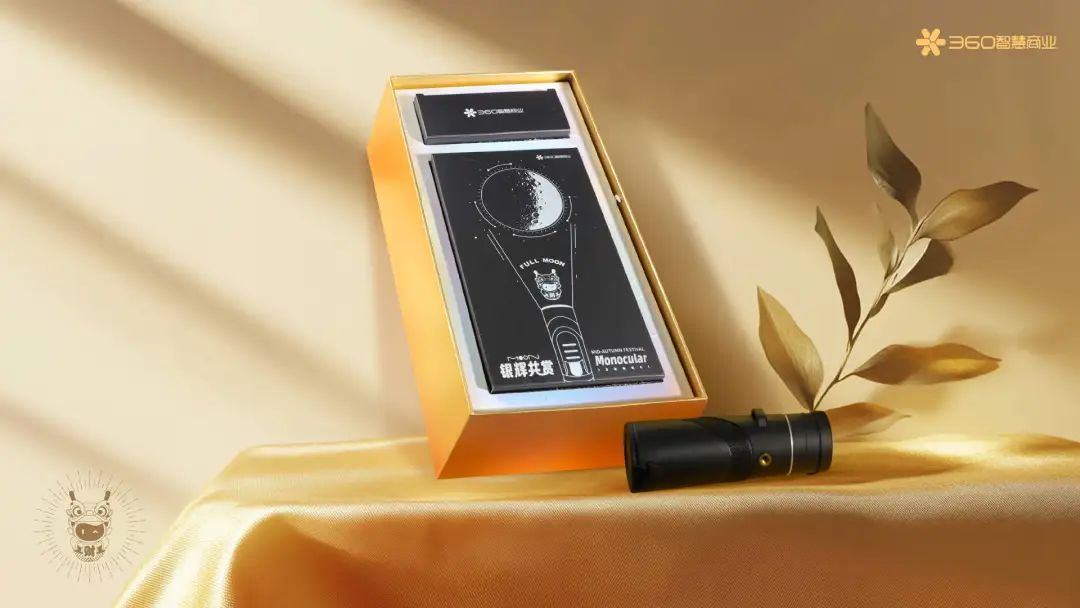 内部礼品包括:“望月”望远镜与“揽乐”掼蛋纸牌,象征着360智慧商业将与客户在商业的浩瀚星空中共同眺望远方,携手共进,脚踏实地的同时不忘仰望星空,不断探寻新的机遇与可能,奔向属于自己的星辰大海。