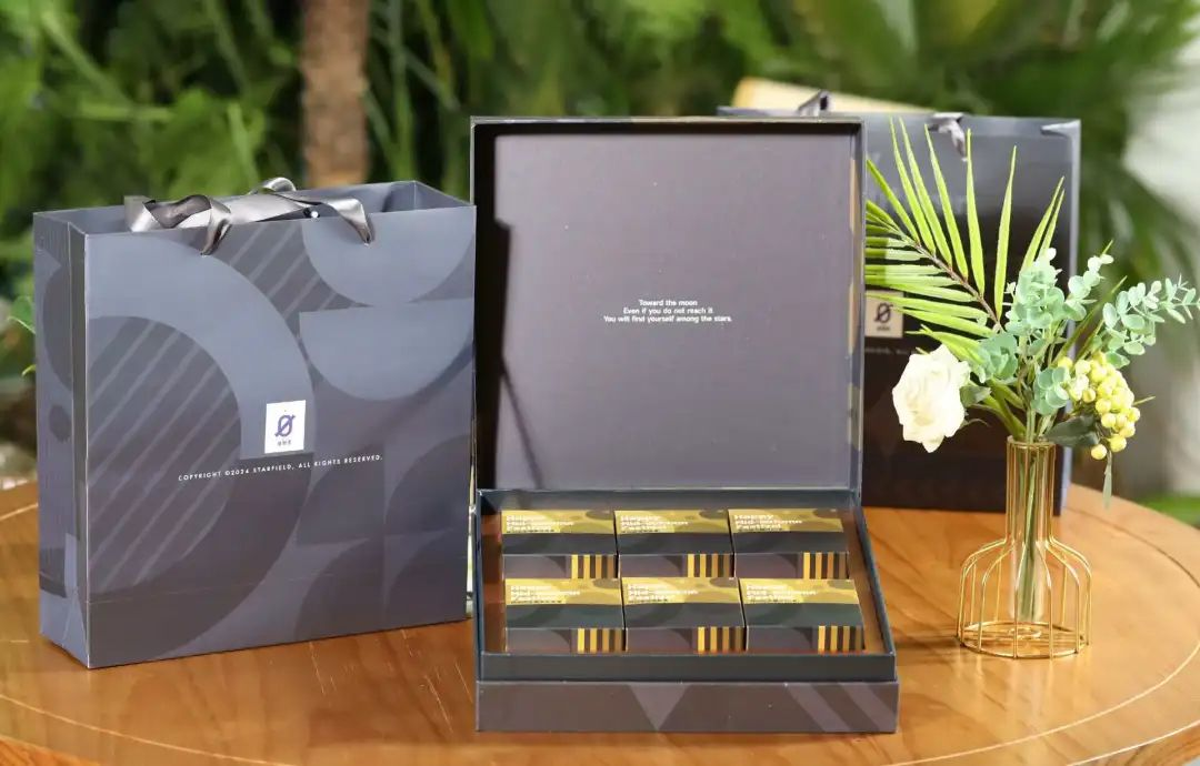 另外,每套月饼还加赠一款采用环保水洗材质的限量款单肩包,时尚并兼具实用性,体现了品牌的环保意识和时尚嗅觉,让这份中秋礼物更加珍贵与独特。