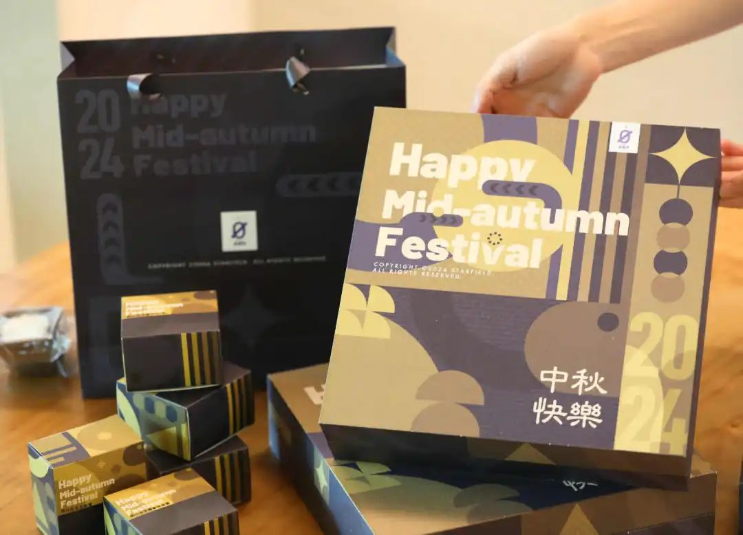 月饼选用了广州酒家月饼,品尝传统美食,共度团圆佳节。明月高悬、蟾宫玉兔、水天一色、金桂飘香,这些耳熟能详的中秋故事都成了具像化的图案印刻在月饼上,生动又有趣。