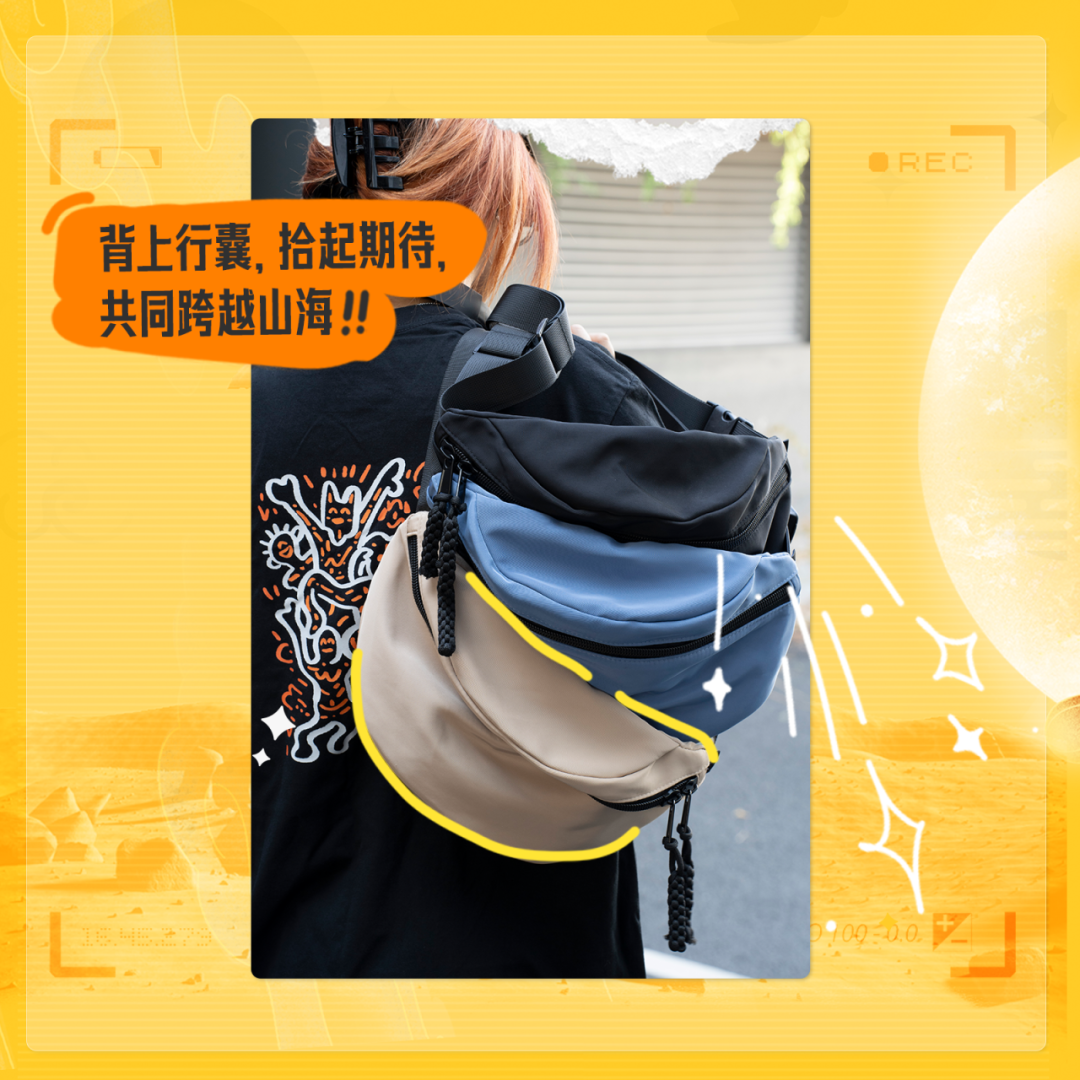 每一个再生环保挎包都由4个塑料瓶重生而来,以盲盒形式发送,每款定制了不同颜色的惊喜,CITY WALK再也不用大包小包!