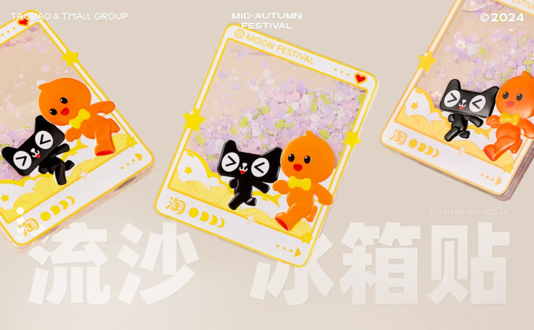 另有流沙冰箱贴,做工精致,印有淘宝和天猫的玩偶卡通形象,身后繁花点点。
