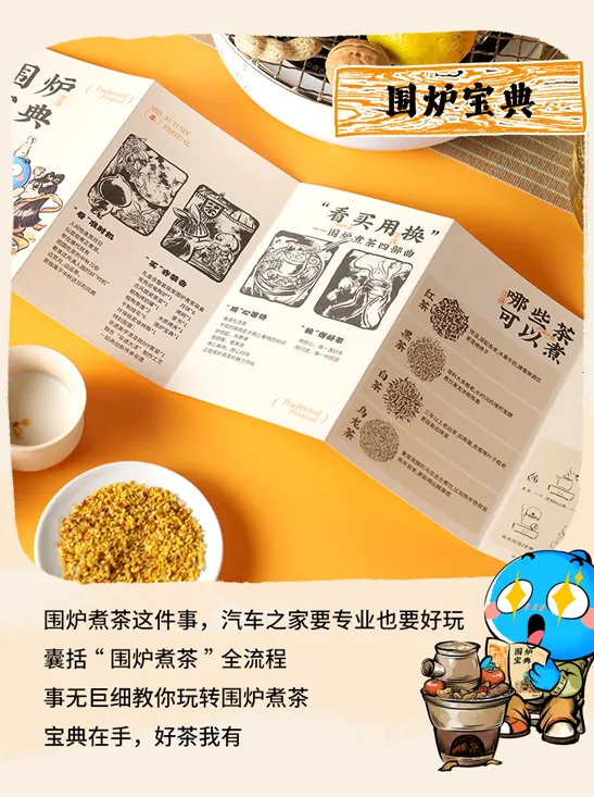 此时围炉,团圆家话。人间恰逢赏月日,仙宫皎寒正煮茶。赏月吃茶的习俗始于唐代,是独属于中秋的中式浪漫。在这个中秋,汽车之家用围炉煮茶给团圆加温。