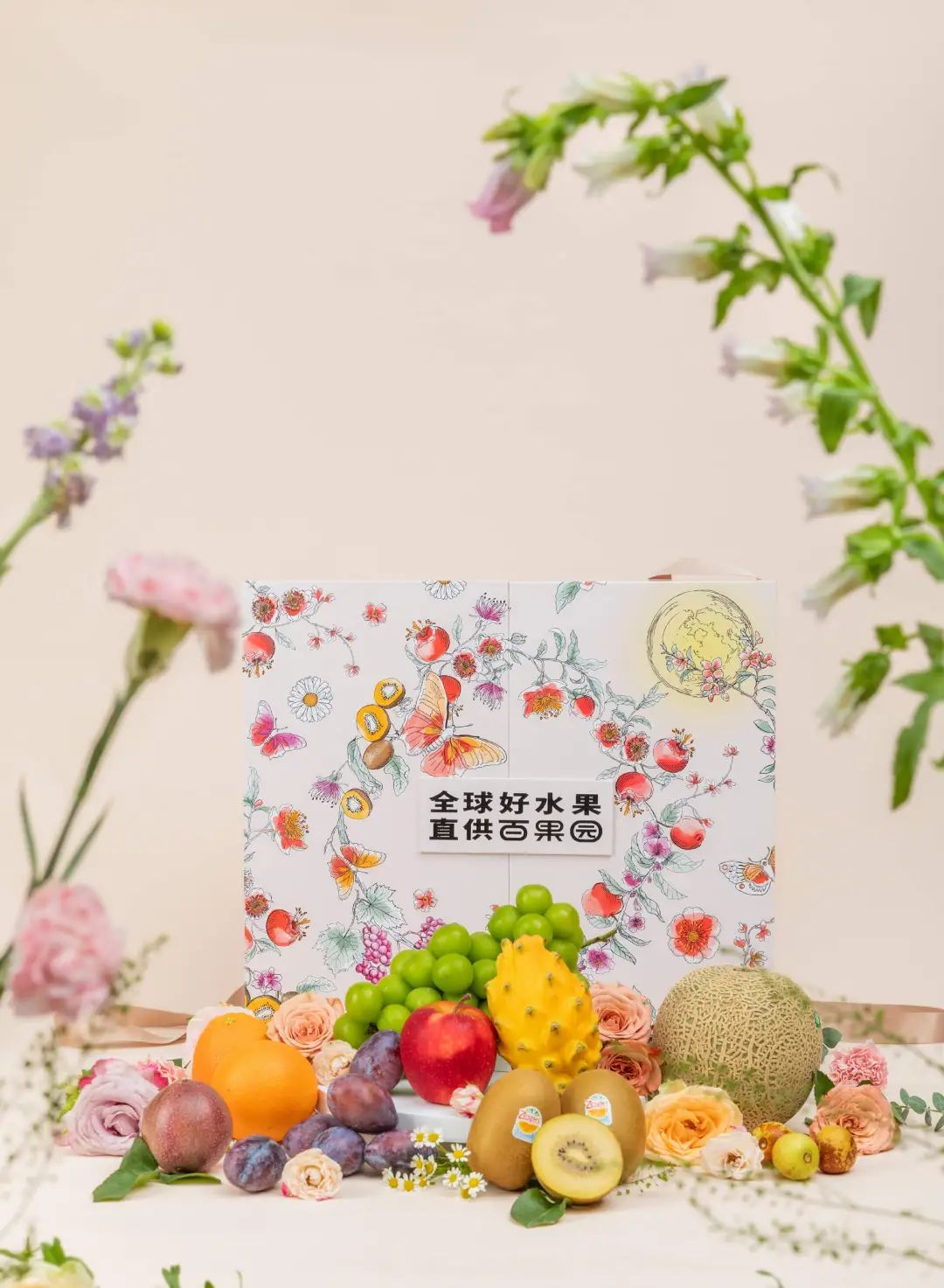 百果园携手迪奥前合作设计师Iracema联名推出了2款水果礼盒,借由设计师的画笔勾勒出百果园直采自全球的时令好果。
