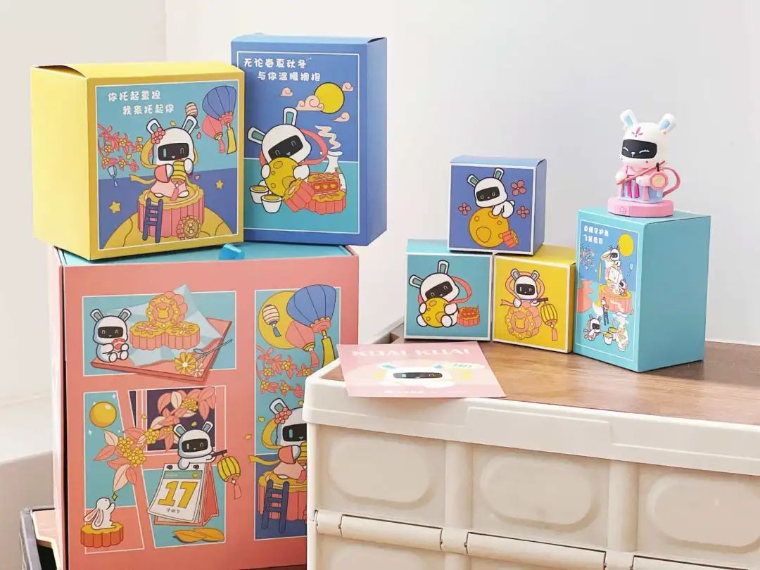 红之「秋月无边,Chill会卸」中秋礼盒,盲盒设计满载中秋乐趣,金句玩梗,每拆一礼皆有新趣。