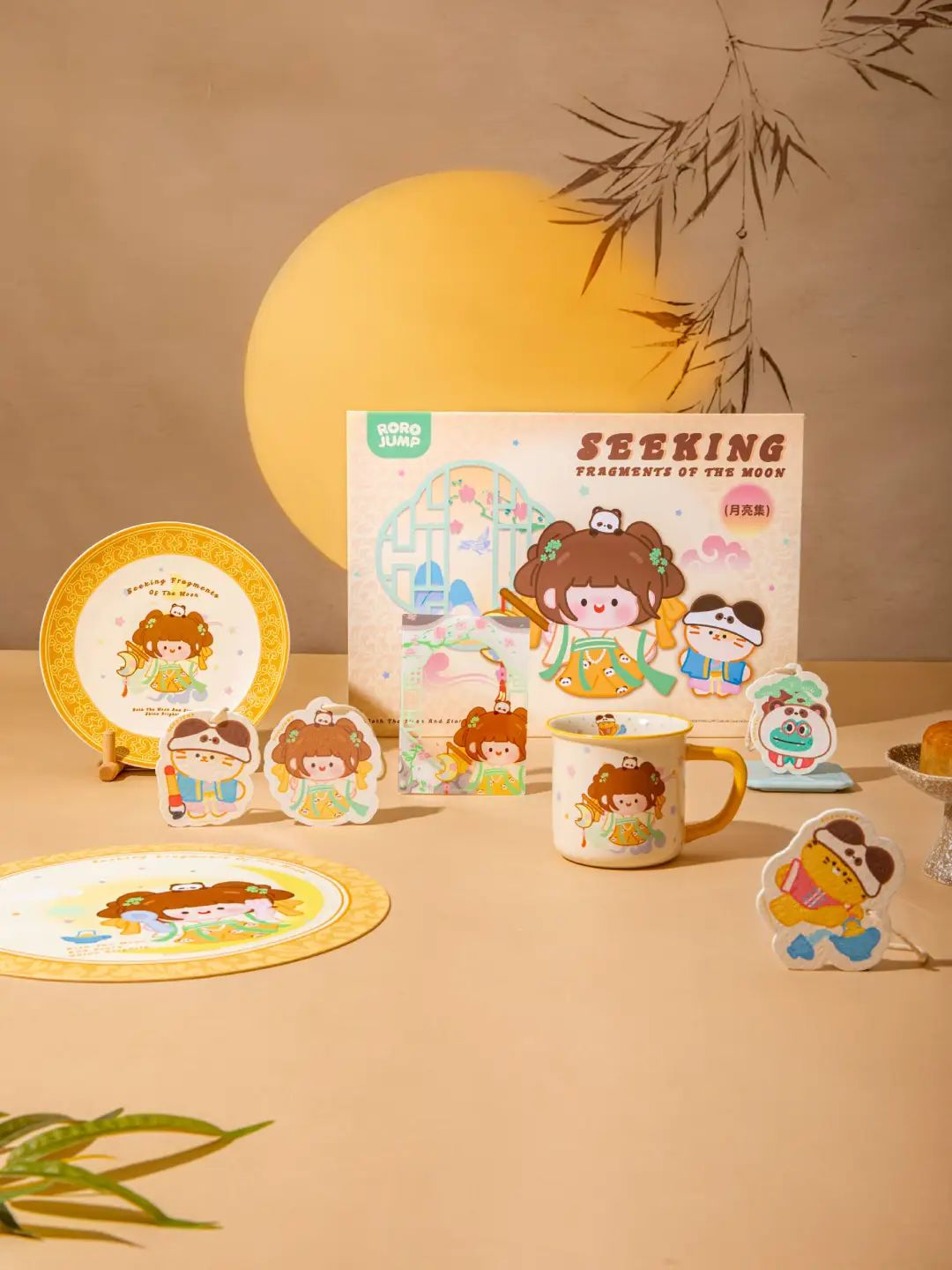 ROROJUMP肉肉酱以一位月相爱好者的视角,巧妙地将月亮的阴晴圆缺与陶瓷艺术相融合,创作出具有新中式风格的中秋陶瓷礼盒。礼盒中的每件作品都融入了新中式插画风格,并与现代审美相结合,为陶瓷注入了时尚与趣味。