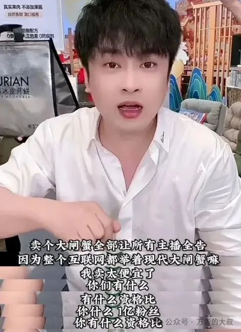 “卖个大闸蟹让全部所有主播告我卖太便宜了,你有什么资格比?”
