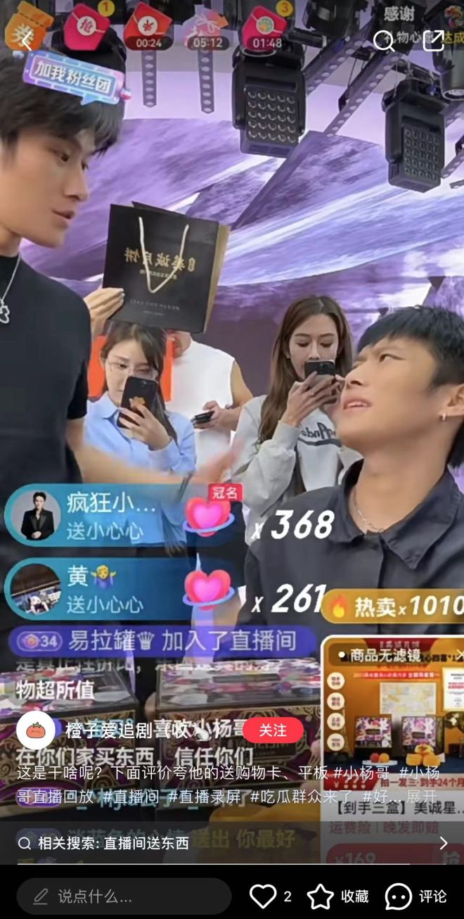 但小杨哥也没闲着,他一边强调“不想吵来吵去”,一边呢,在直播间给网友发购物卡或者平板……