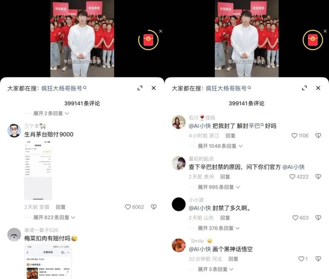 但在辛巴的评论区,已经有网友晒出自己得到了赔款。也有不少网友@AI小快,询问何时解封。
