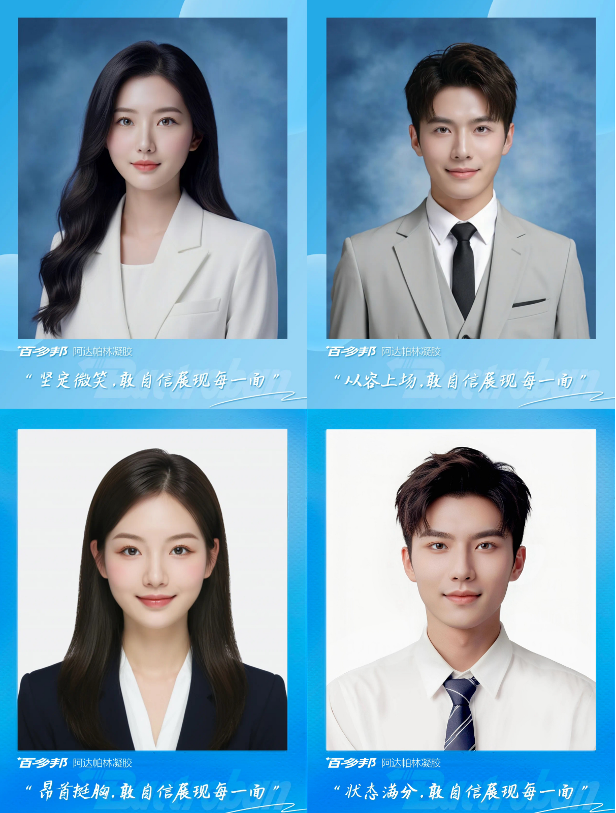 该项目的布局依旧逃不过对“AI创意营销”新范式的应用:AI+适用多种场合的证件照创意+毕业季求职场景+亟需祛痘从容上场的年轻消费者。