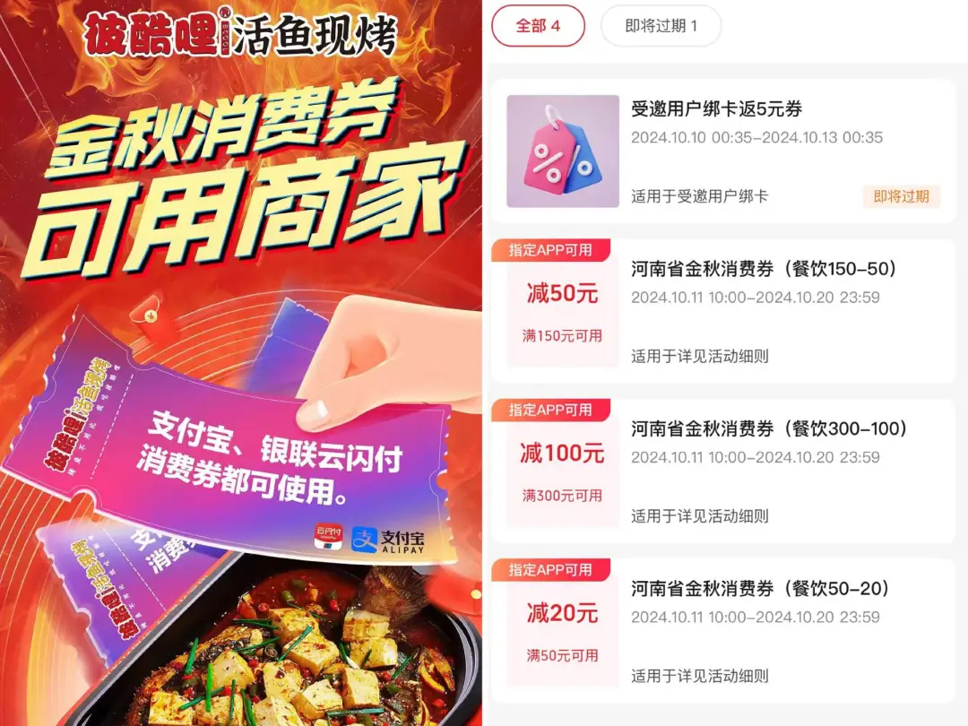 郑州也是从10月份起,为支持餐饮、文旅、住宿等消费活动,进一步激发市场活力,有效释放消费潜力,更好惠企利民,省财政投入资金2亿元,在全省范围内分4批发放金秋消费券,每批次安排资金5000万元。