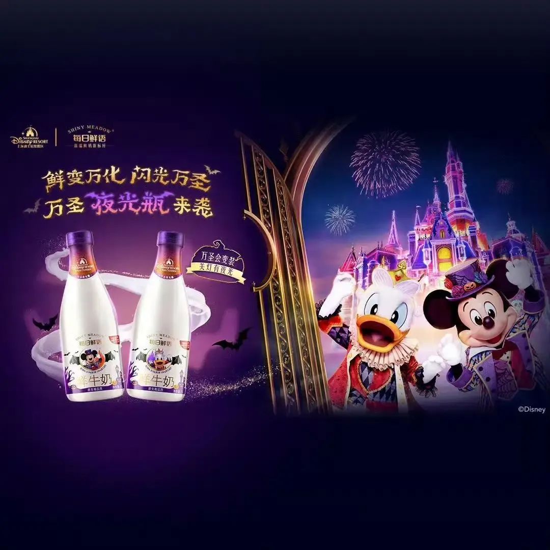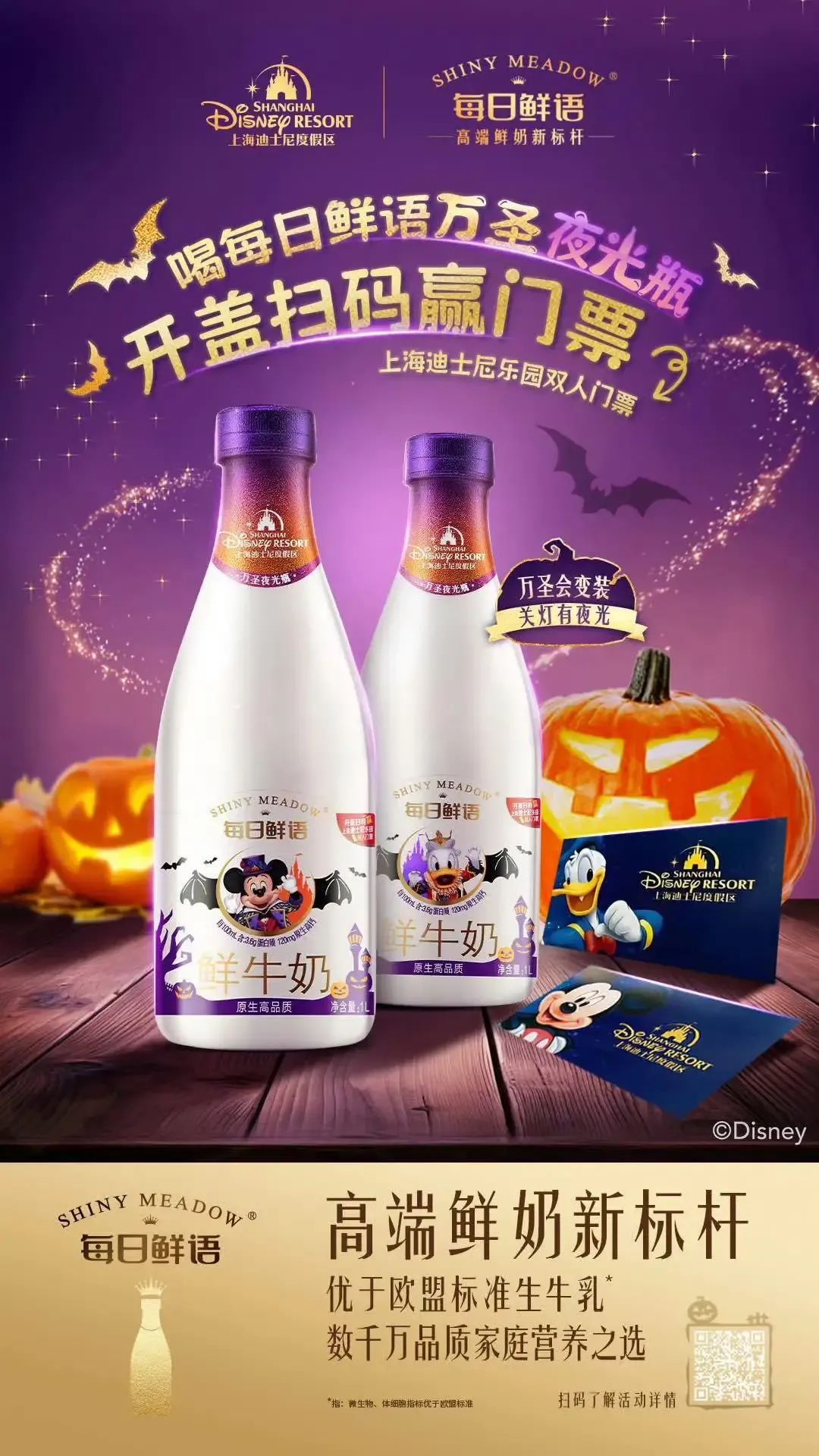 ps:关灯有惊喜哦,夜光瓶氛围拉满!越夜越惊喜!还有,每一个发光的鲜奶瓶里,都有可能藏着一套上海迪士尼乐园双人门票噢!