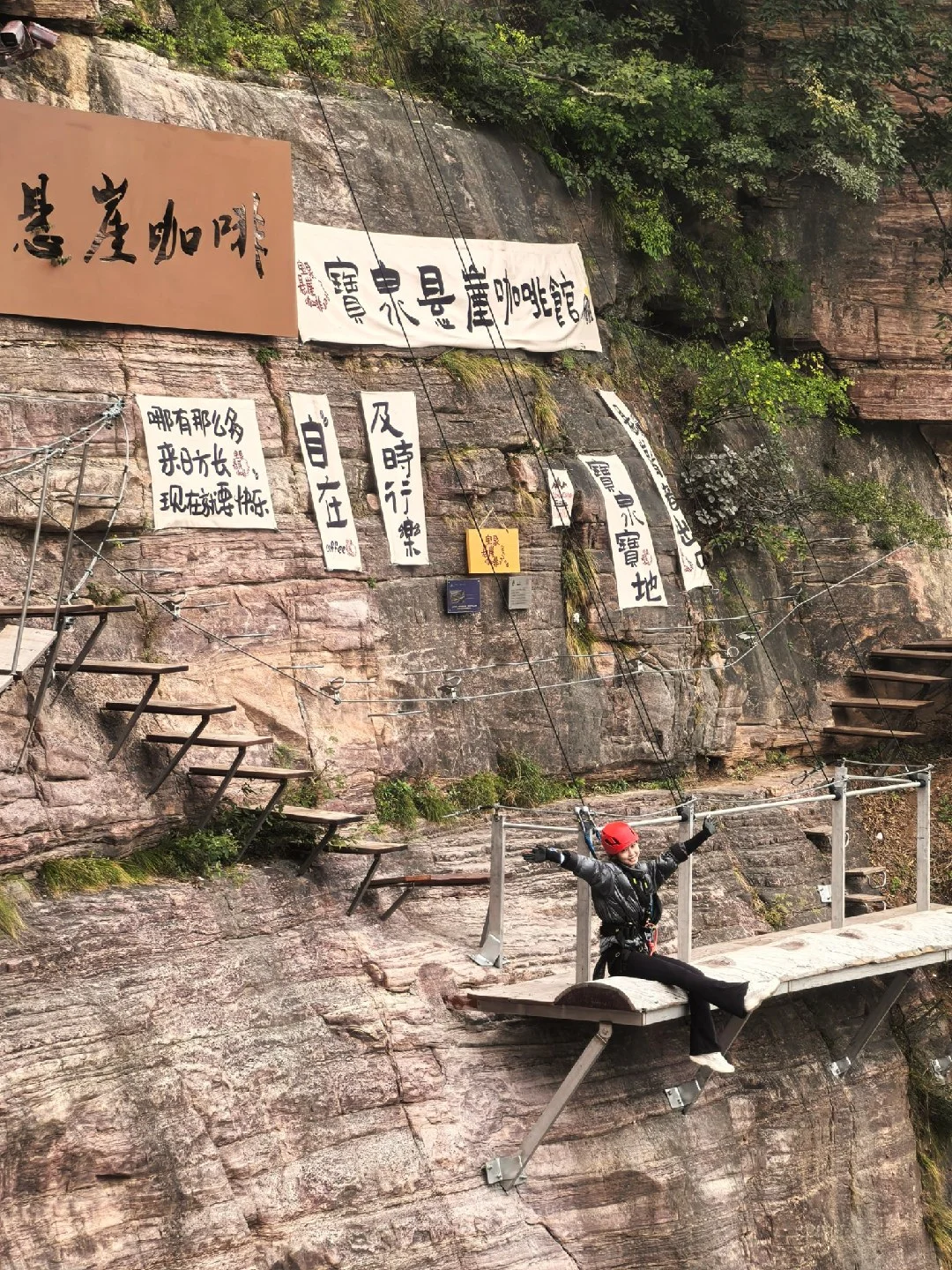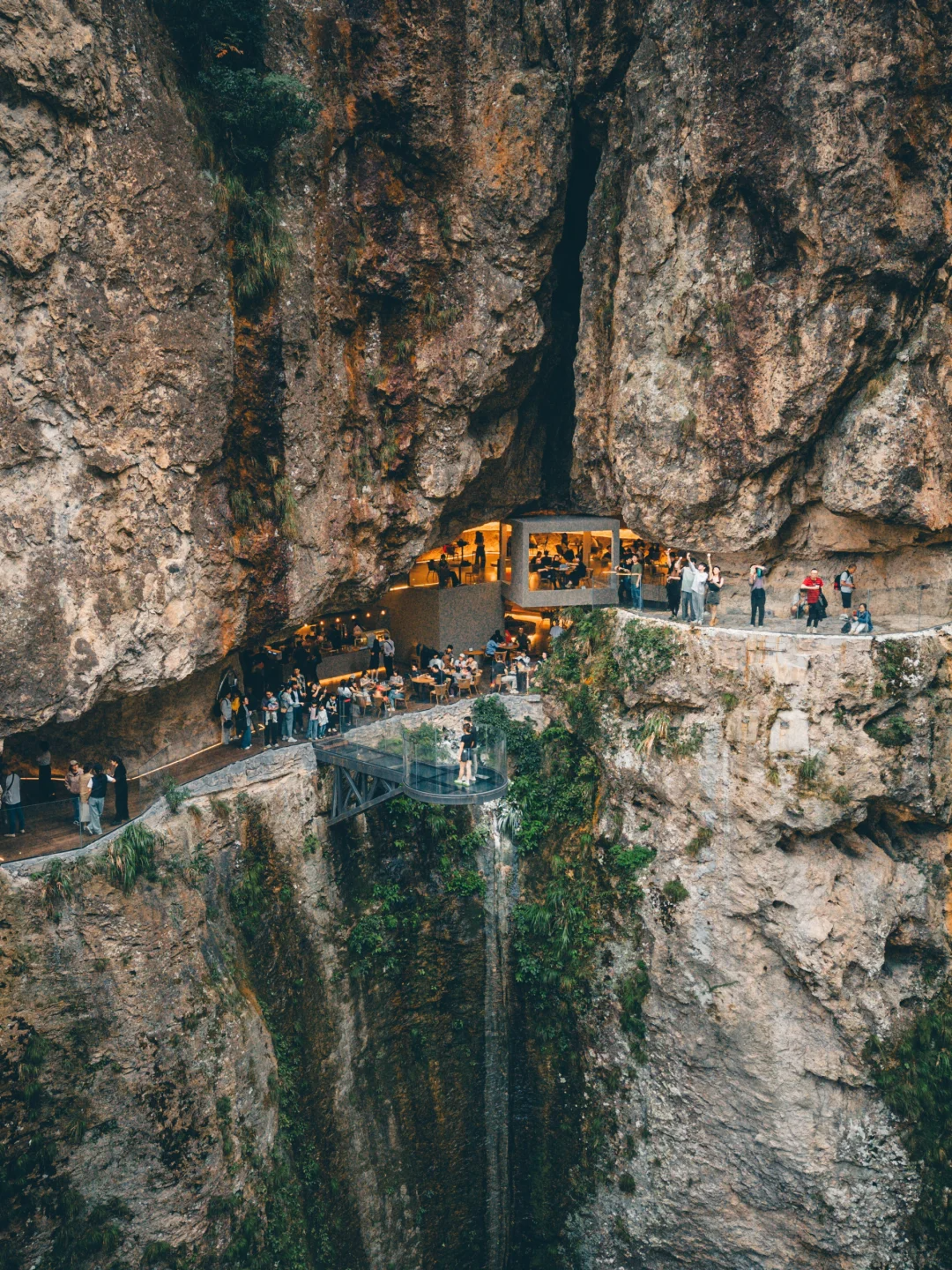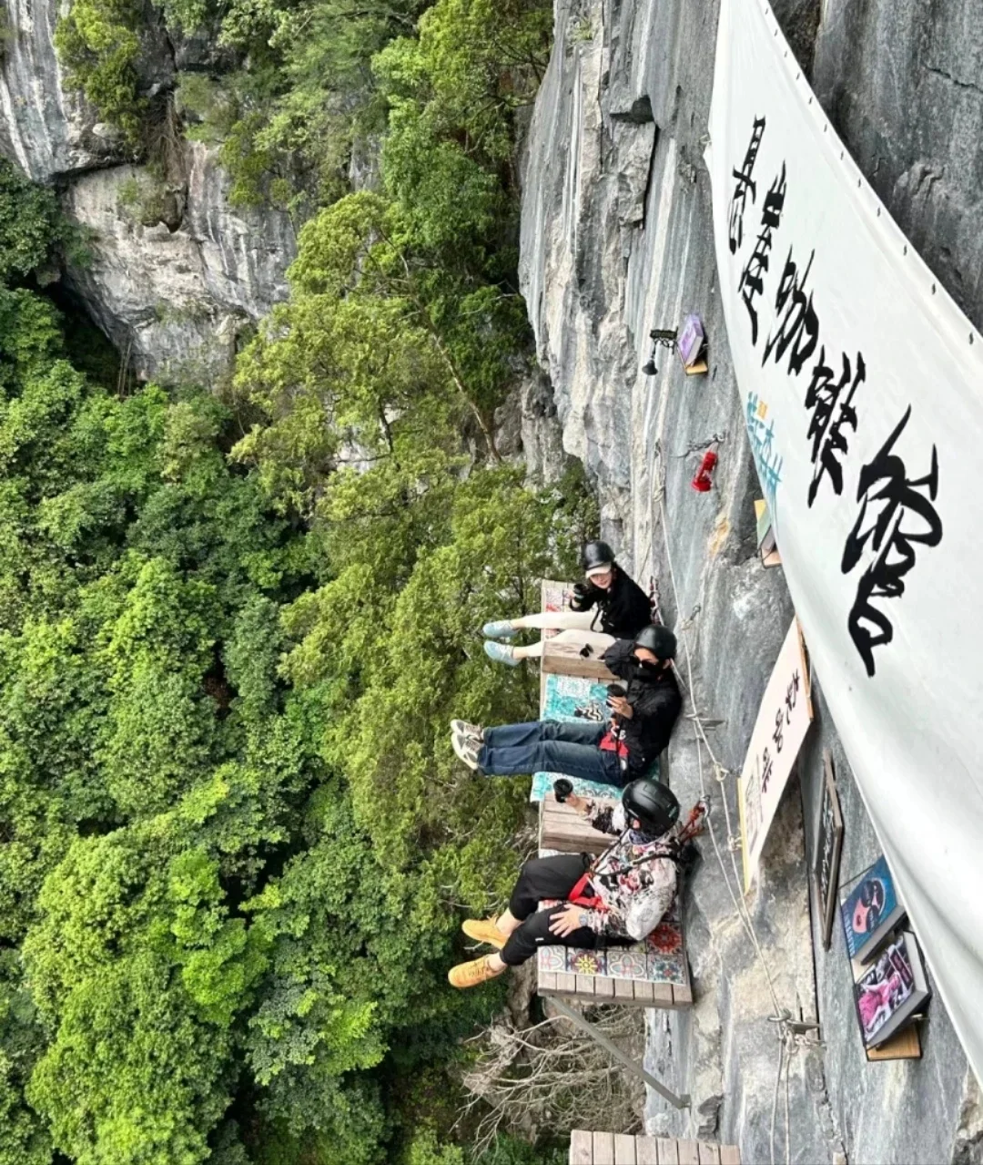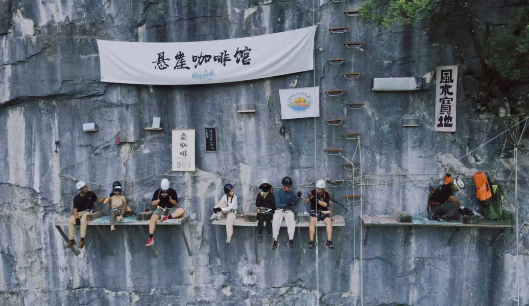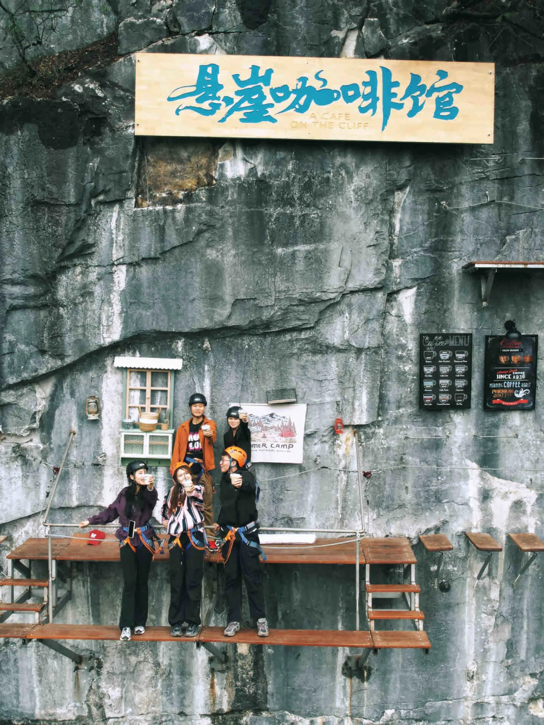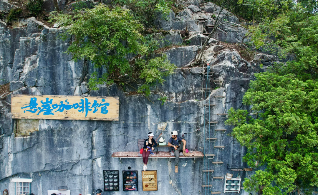 太抽象了,景区开“悬崖咖啡馆”,绝壁坐满年轻人!