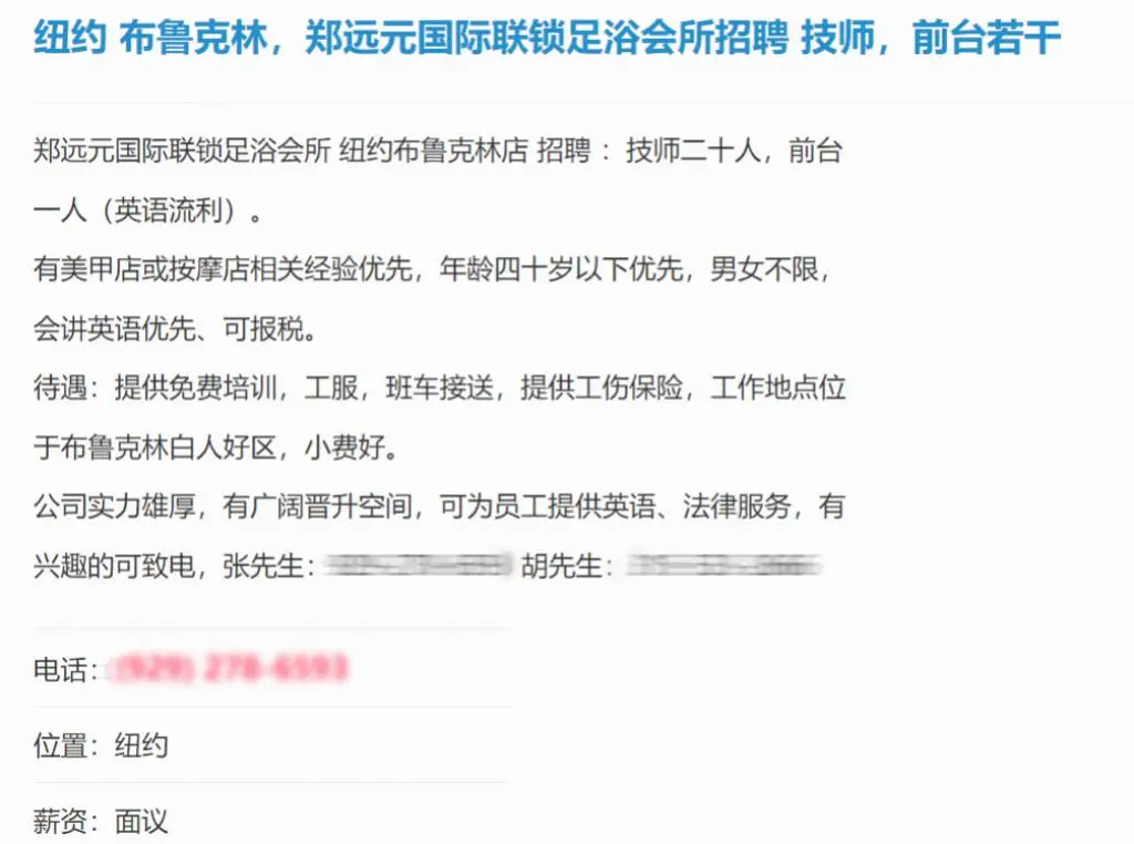 目前,郑远元修脚店在美国,依旧采用传统的招聘模式,在纽约的华人招工网站或者论坛上,依旧可以查询到郑远元修脚店招聘前台和技师的相关消息。