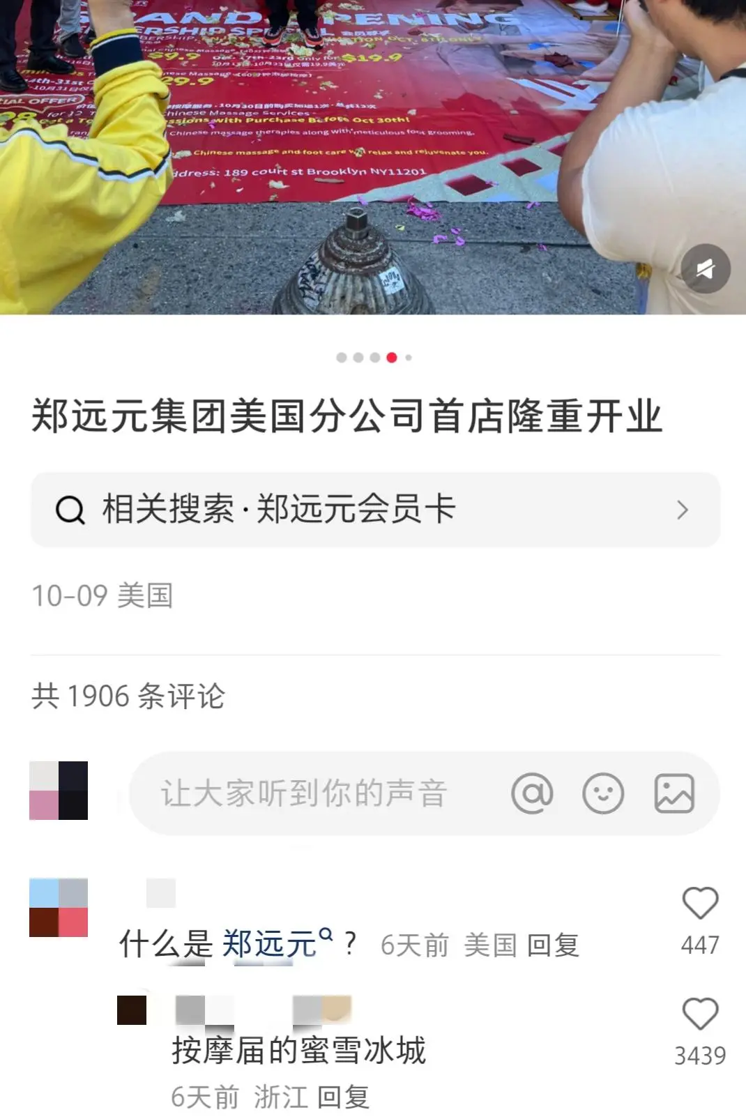 一位郑远元修脚店的员工表示,郑远元修脚店美国首店在10月9日正式营业,营业期间还在打折,“开业期间10美元(约合71.3元人民币)洗脚按摩修脚,国内会员卡也能用,正在联网测试中”。而郑远元修脚店的美国二店,则选择回归主场,将在曼哈顿华埠,也就是华人聚集的唐人街开业。