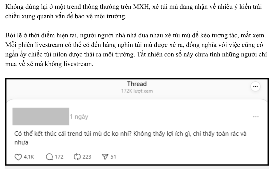 VnExpress调查数据显示,过去三个月里的越南,Facebook社交网络出现了超过50个“盲袋”协会和团体,平均会员数5万至30万,TikTok上话题标签“#túimù(盲袋)”有数百个视频和直播会话,主要是交换信息或者买卖信息。