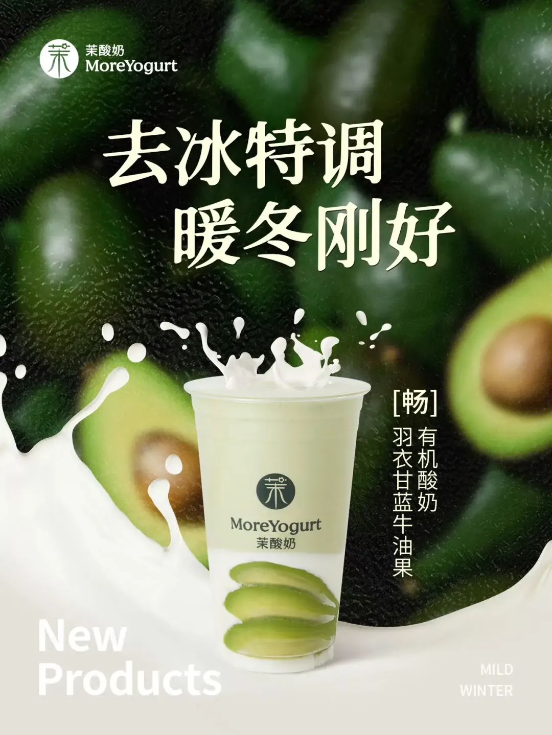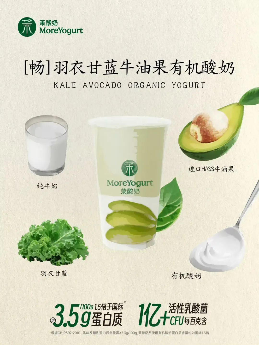 最近,正值秋冬换季,茉酸奶推出新品—去冰特调款[畅]羽衣甘蓝牛油果有机酸奶。