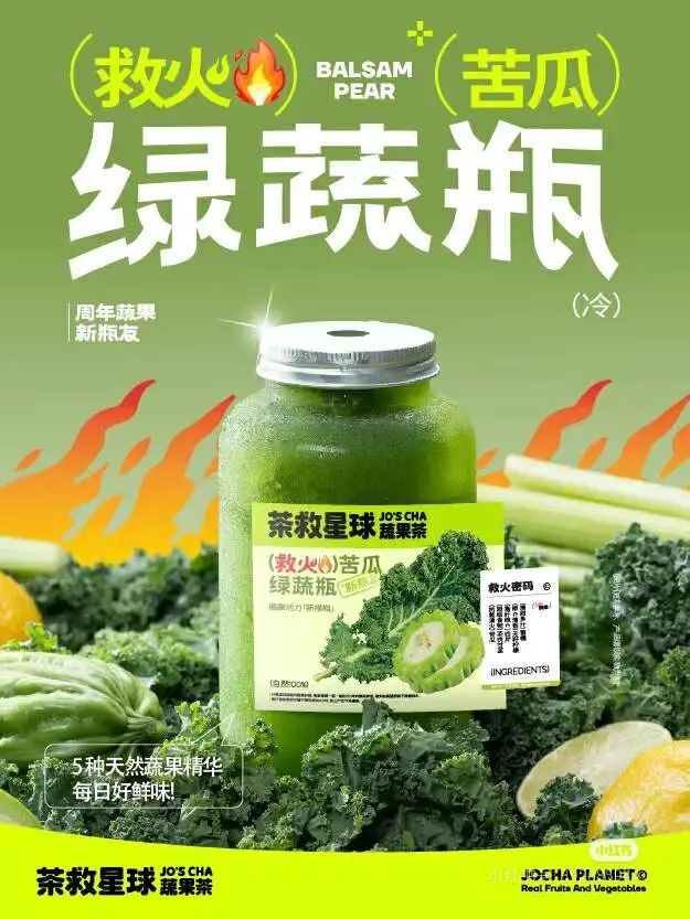好好好,喜茶有他家的纤体瓶,茶百道去种草“沉淀”了,茶救星球有它们的绿蔬瓶橙蔬瓶;乐乐茶你靠可爱就能fresh全场!