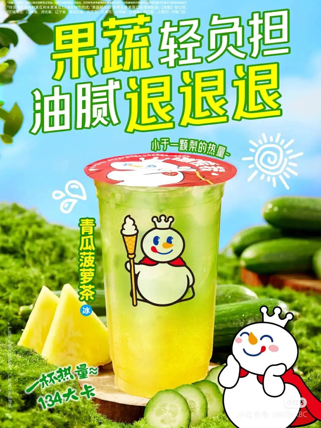 今年七月,蜜雪冰城也推出了一款蔬果茶——青瓜菠萝茶。