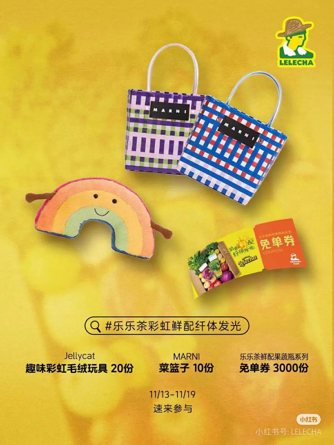 (内含Jellycat彩虹毛绒玩具、菜篮子、乐乐茶鲜配果蔬瓶系列免单券)