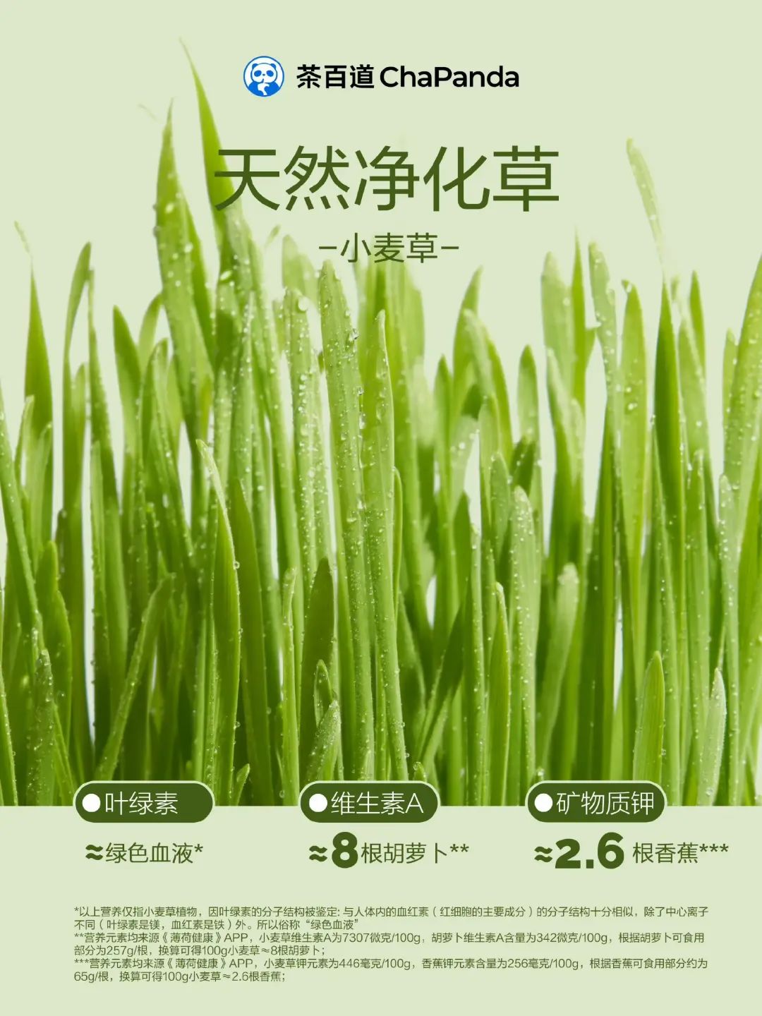 近期,茶百道推出超级蔬食系列。『清体小麦草』『轻畅羽衣甘蓝 』上线。