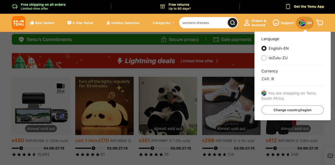 今年1月,Temu也登陆南非市场,11月,Temu又进入非洲尼日利亚市场。目前,Temu 是南非 iOS 和 Android 用户下载次数最多的应用程序。