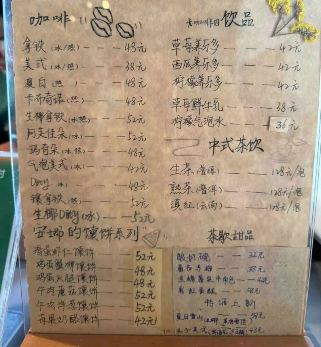 对于质疑当地消费水平的,网友更是直接贴图放大,当地一家咖啡店最便宜的美式38元,其他的价格基本都是48元或52元。