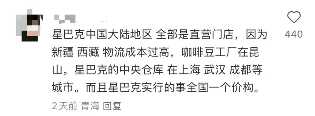新疆和西藏较为偏远,而星巴克的中央仓库在上海、成都等地,从而导致冷链运输成本高,补货速度慢,而星巴克又在全国施行一个价,因此便会存在经营利润的问题。