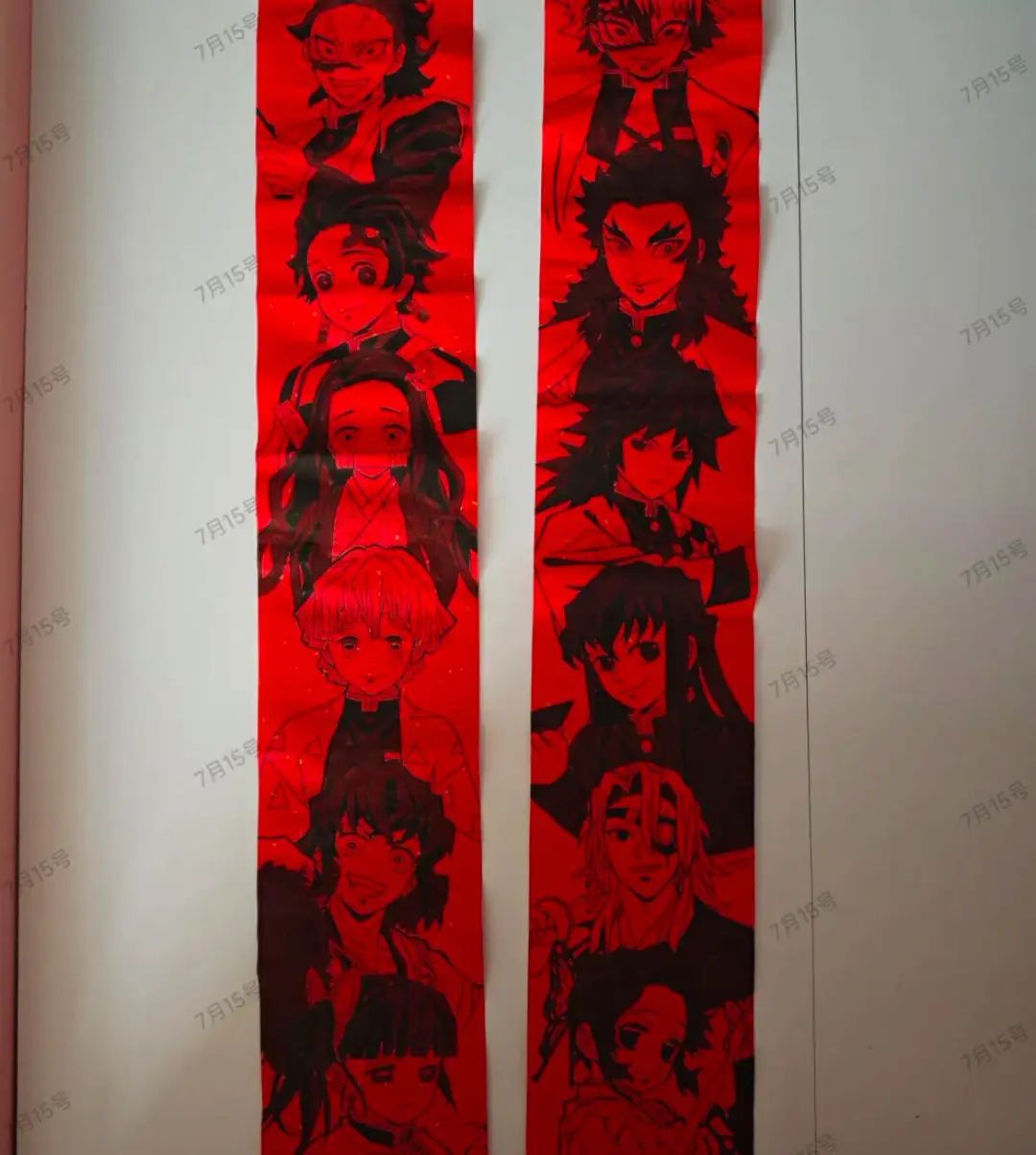 再回头看看充满设计巧思、一笔一画都凝结着画师们沉重爱意的二次元春联,你只能感叹,这13块钱可能是这个春节花的最值的一笔钱了。