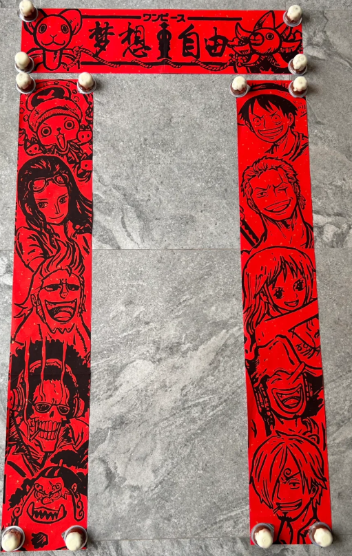 贴《海贼王》对联,是祝福自己下一年梦想自由;贴《银魂》,寓意则是“万事OK”。