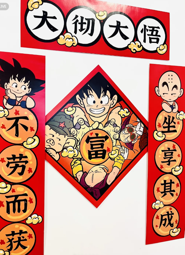 直到很多冲着《龙珠》来买春联的人向小巫抱怨,春联上的字不吉利,问她有没有别的款式,她才意识到,即使是二次元年货,也不是“越怪的”越好卖。不少年轻人对新年产品的期待依然是传统的吉祥美好。