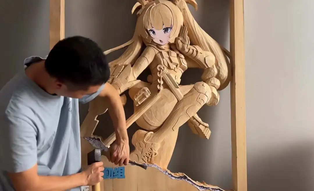 还有师从学院派东阳木雕的雕塑硕士,发布的几个木雕作品视频只有个位数的点赞,直到拿《绝区零》的热门女角色青衣刻了一个等身木雕,游戏玩家们开心于自推终于从纸片人升级成立体木头人,“东阳木雕”这个木雕流派在互联网上收获了一批粉丝。