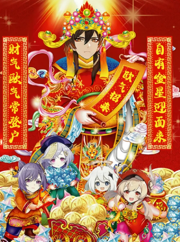窗花和春联都不过是基础配置,二次元也有自己的财神。正月初五迎财神,有人迎的是赵公明,有人则迎的是《原神》里的钟离。听起来也很合理:财神的当然得有赛博分身,不然谁掌管我抢到的红包?