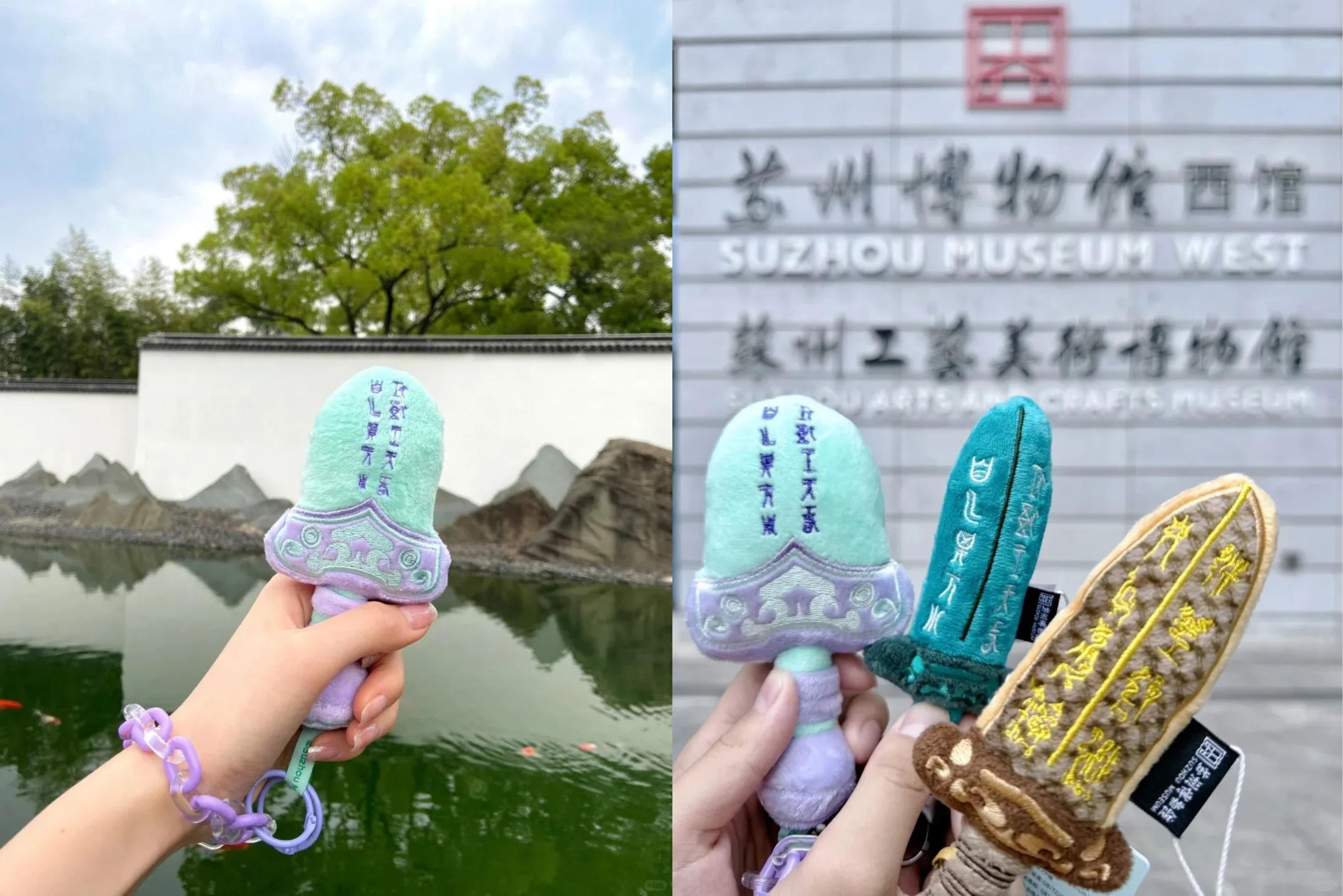 近年来,一些博物馆和动物园的文创周边也开始采用“毛绒大法”策略,以此来塑造或强化当地的历史/城市名片。胖乎乎的吴王夫差剑、钳住幸运的大闸蟹、吞噬一切的大嘴鹈鹕、呆萌佛系的百变豚鼠……从形态设计到意象表达,将当地文化与原型特征巧妙融合,赋予了文创周边更多的收藏价值和流量传播效能。