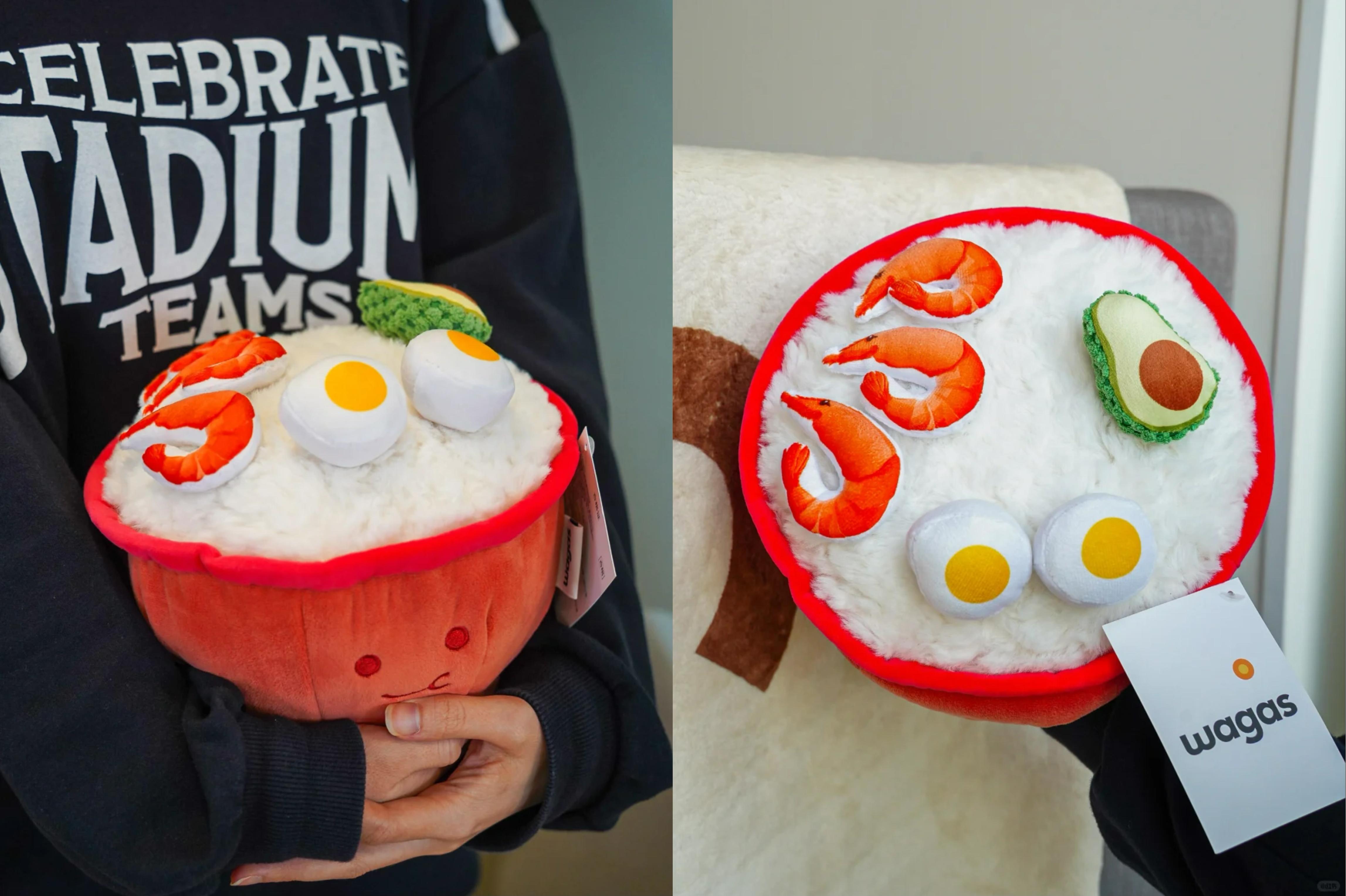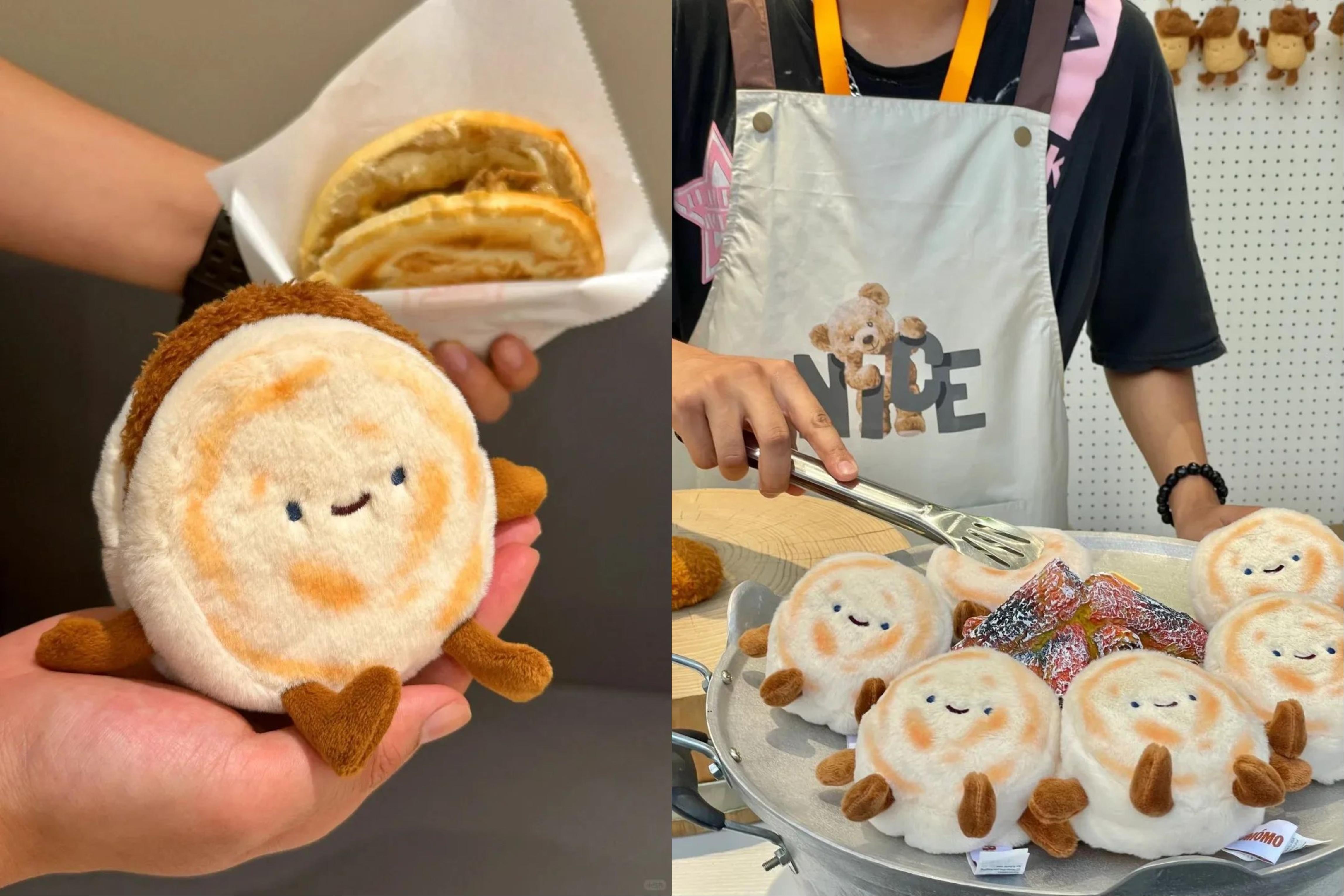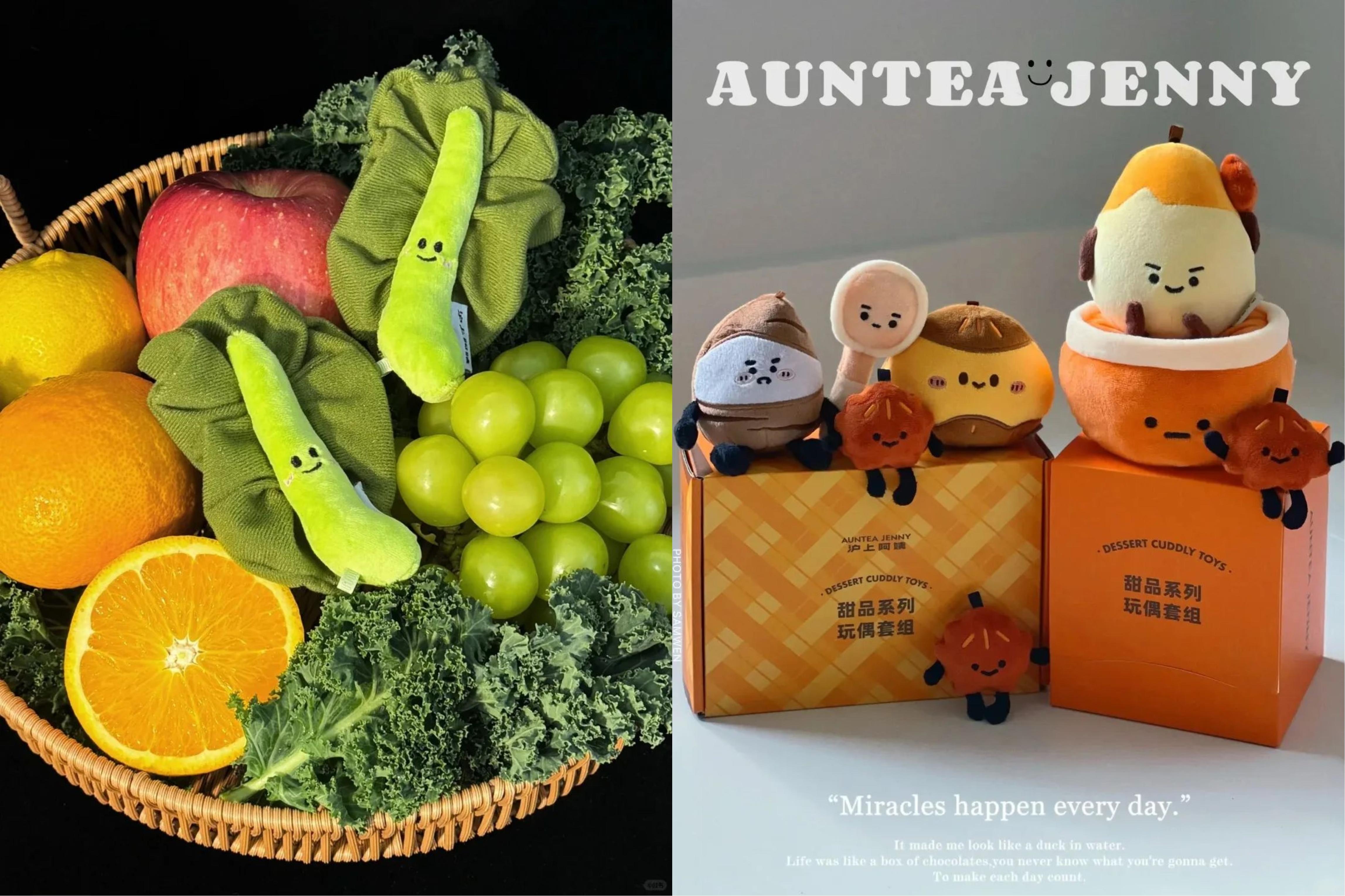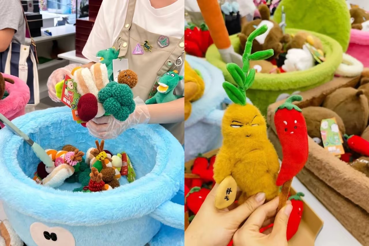 热腾腾的“麻辣烫”、刚出锅的“肉夹馍”、新鲜采摘的“羽衣甘蓝”、补充能量的“大碗偶”……均被打造成毛绒玩具形态进行销售,甚至一些门店的工作人员还会像对待真正的食物一样,绘声绘色地为顾客表演打包流程,情绪价值和品牌亲和力一下子就拉满了。